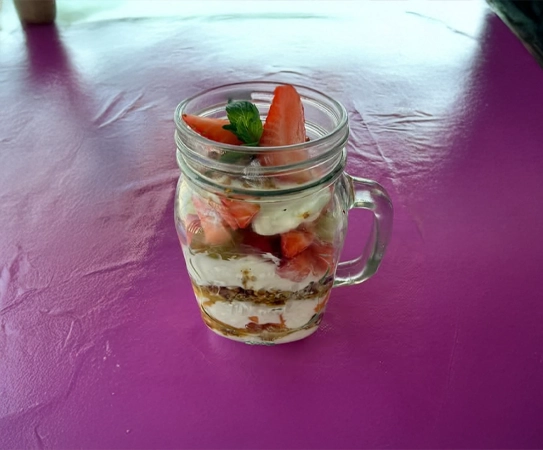 Una base cremosa de yogurt griego, cubierta con frutas frescas de temporada y tu topping de preferencia. La combinación perfecta entre proteína, frescura y ese toque dulce.