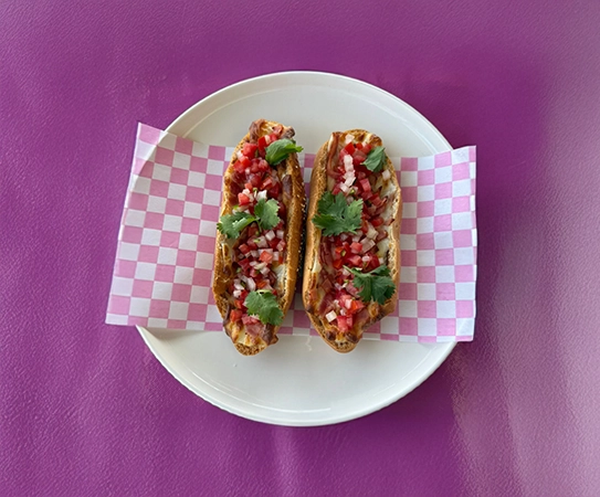 Nuestro pan artesanal se cubre con una generosa capa de frijoles refritos caseros, se corona con un fresco pico de gallo y se gratina con auténtico queso manchego.